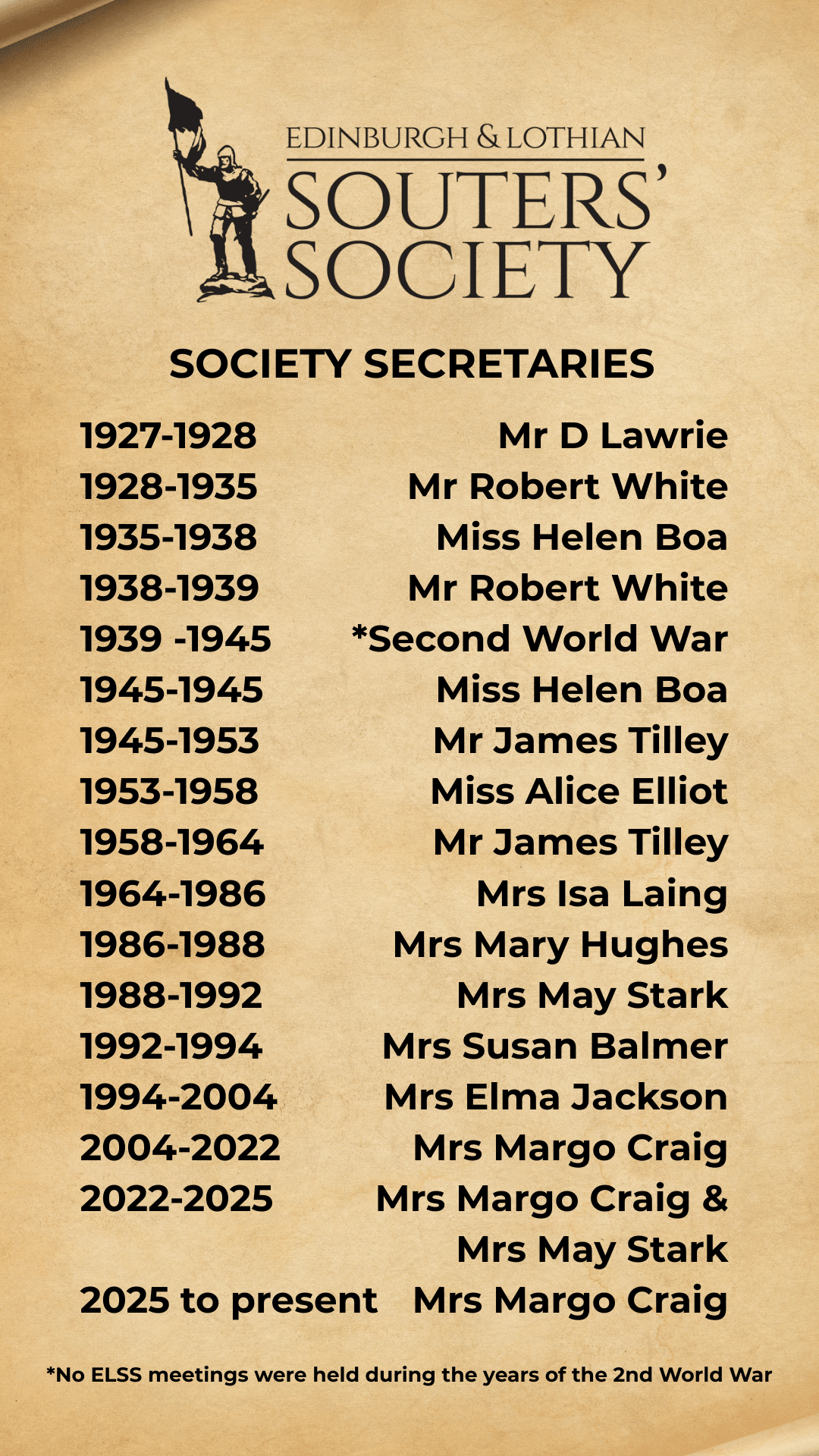 Read the full list of the Edinburgh & Lothian Souters Society Secretaries