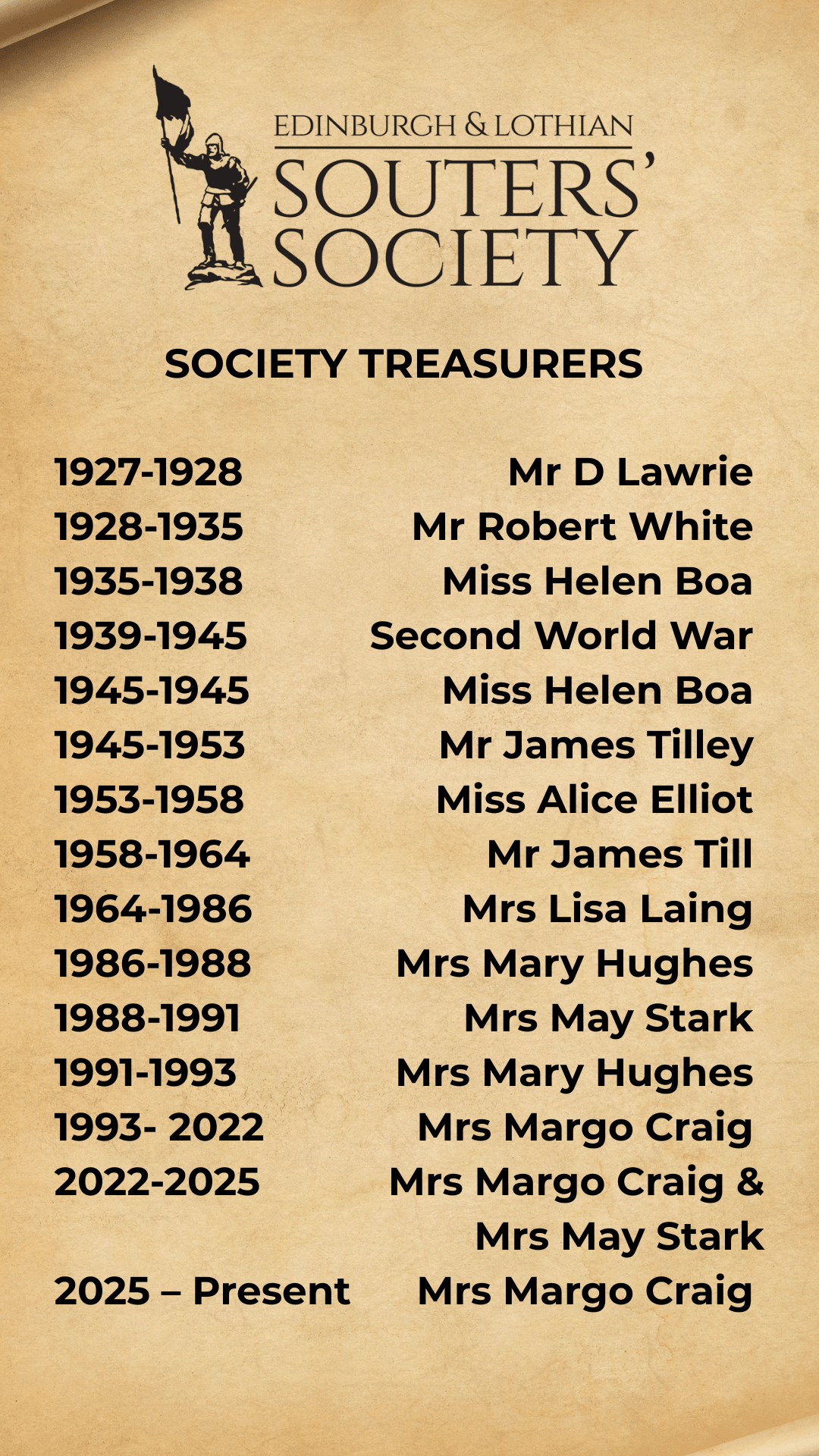 Read the full list of the Edinburgh & Lothian Souters Society Treasurers